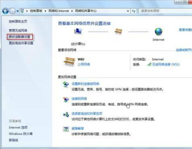 一、打开“控制面板”进入“网络和共享中心”,点击左边的“更改适配器设置”。