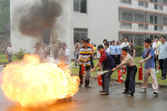 三元区消防大队徐岳光参谋应邀为学员们进行了消防安全知识讲座,他通过对火灾事故的原因分析,向大家讲授了消防的基本常识,特别是对发生火情时如何实施火灾报警、初起火灾扑救和及时有序地进行人员疏散等问题进行了认真细致的讲解。之后全体参训人员在南区外语系楼边进行了现场灭火演练的活动。